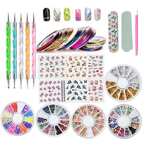DIY Glitter Nail Rhinestones Decorations Dotting Tool Water Transfer Sticker Decal Nail Line Tape St