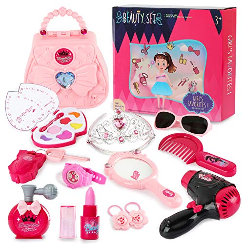 Jaolex Princess Makeup Set- 12 PCS Pretend Purse Make Up Kit for Girls My First Princess Beauty Set