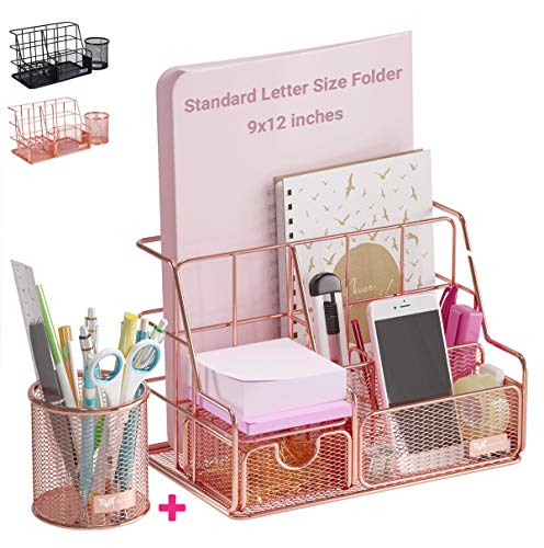 Orgowise Mesh Desk Organizers and Accessories Set. Rose Gold Desktop Organizer with Pen Holder and P