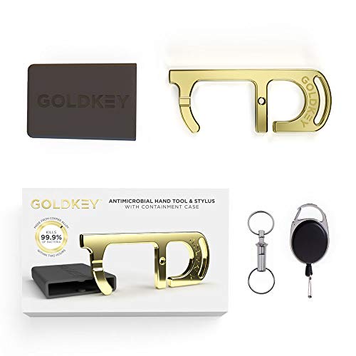 GoldKey Antimicrobial No Touch Door Opener Hand Tool and Stylus with Containment Case, Keychain, and