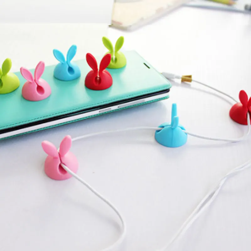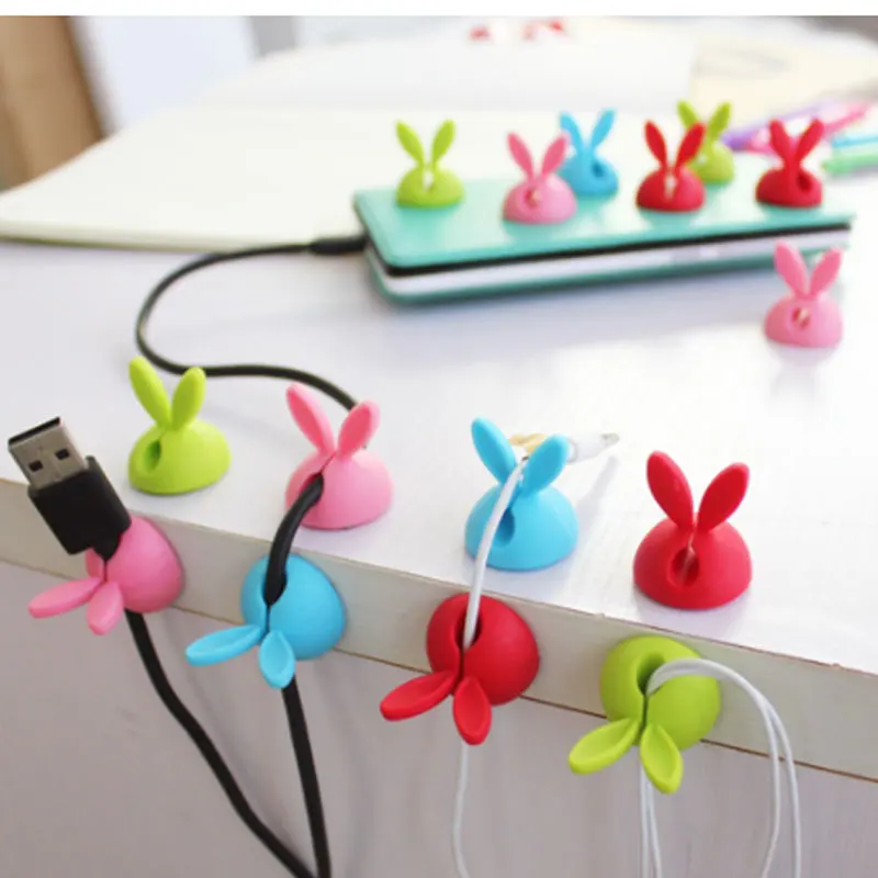4pcs/bag Winder Wrap Cord Cable Storage Desk Set Rabbit Shaped Wire Clip Organizer Space Saving Desk