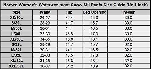 Nonwe Women's Snow Ski Pants Outdoor Water-Resistant Warmth Black S/30 Inseam
